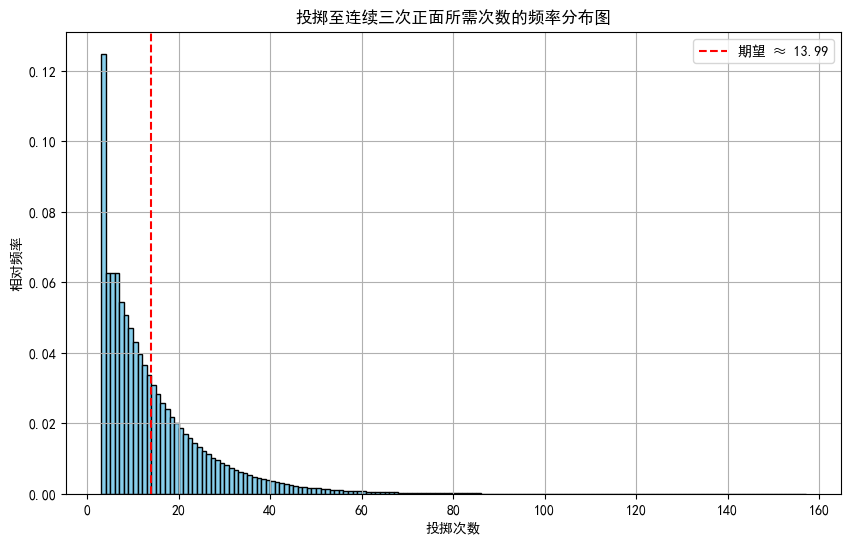 期望投掷次数向量:
